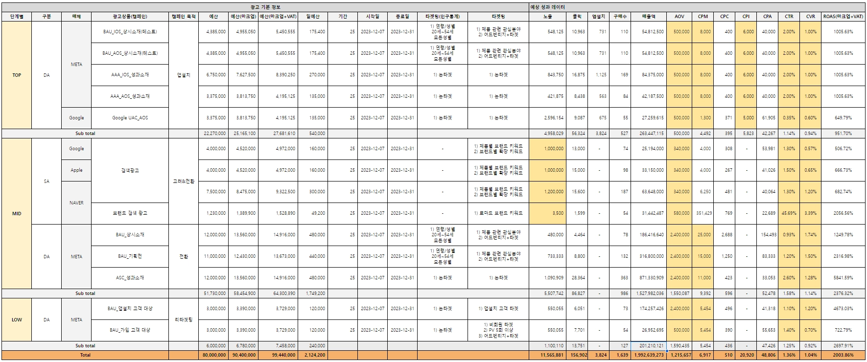 매체 운영 (META, NAVER SA, Apple Search ads, Google Ads)