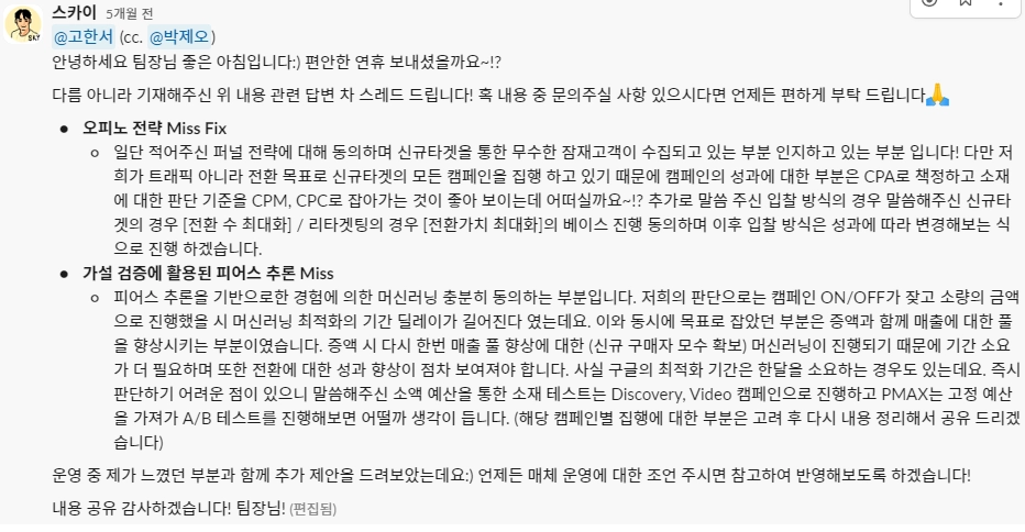 최적화 기간을 늘려가는 이유는 캠페인 최적화 이후 성과 판단 필요한데 현재 캠페인별 최적화 시기가 너무 빠름