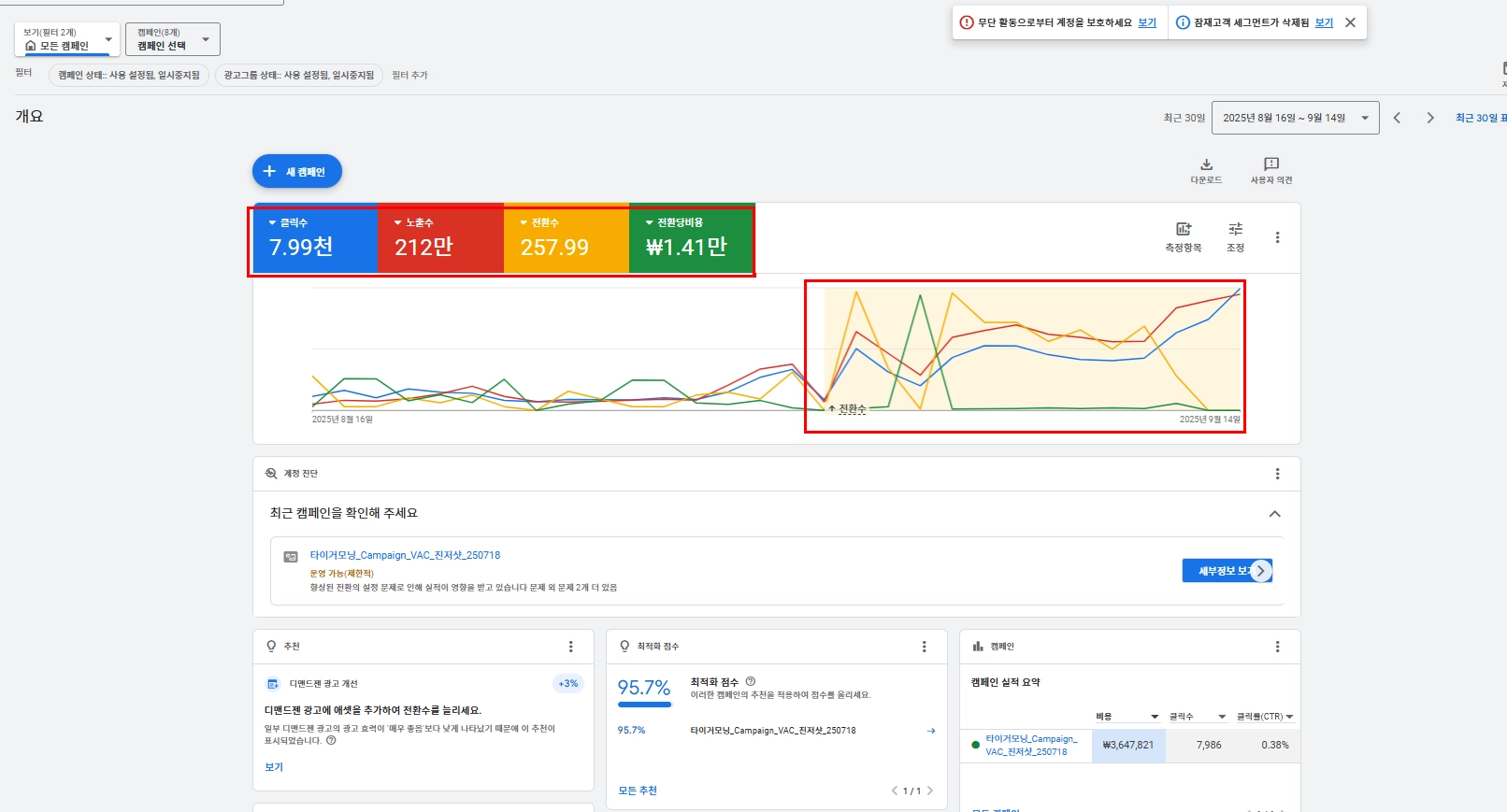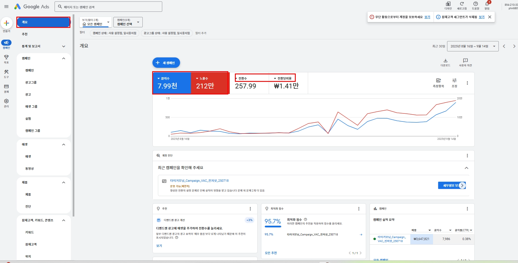 구글애즈 내 추천 클릭