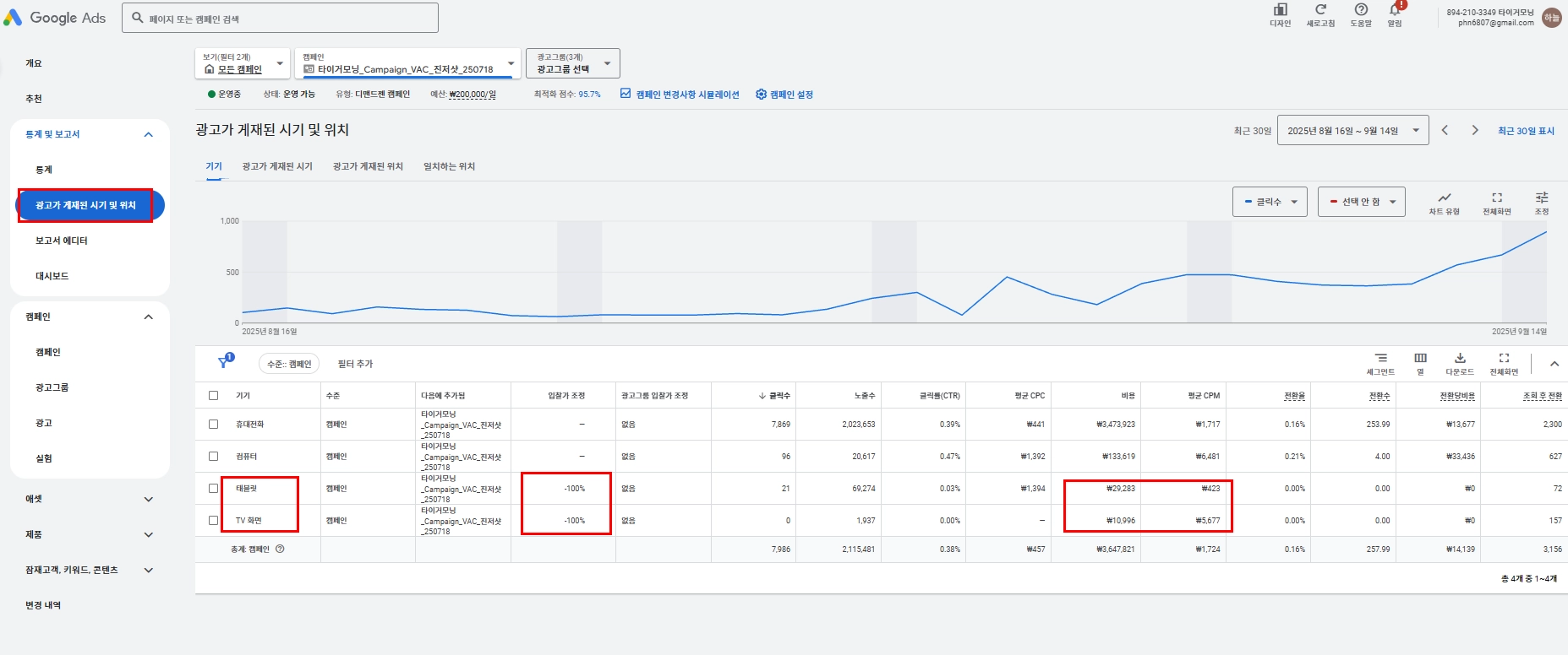 구글애즈 기기 관련 제외 처리 (모바일, TV화면)